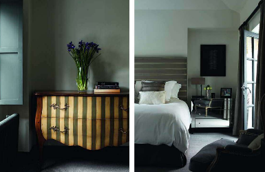 Because there is so much modern furniture in the home, Prain covered the chairs in a stripe and added two mirrors. ENJOY!